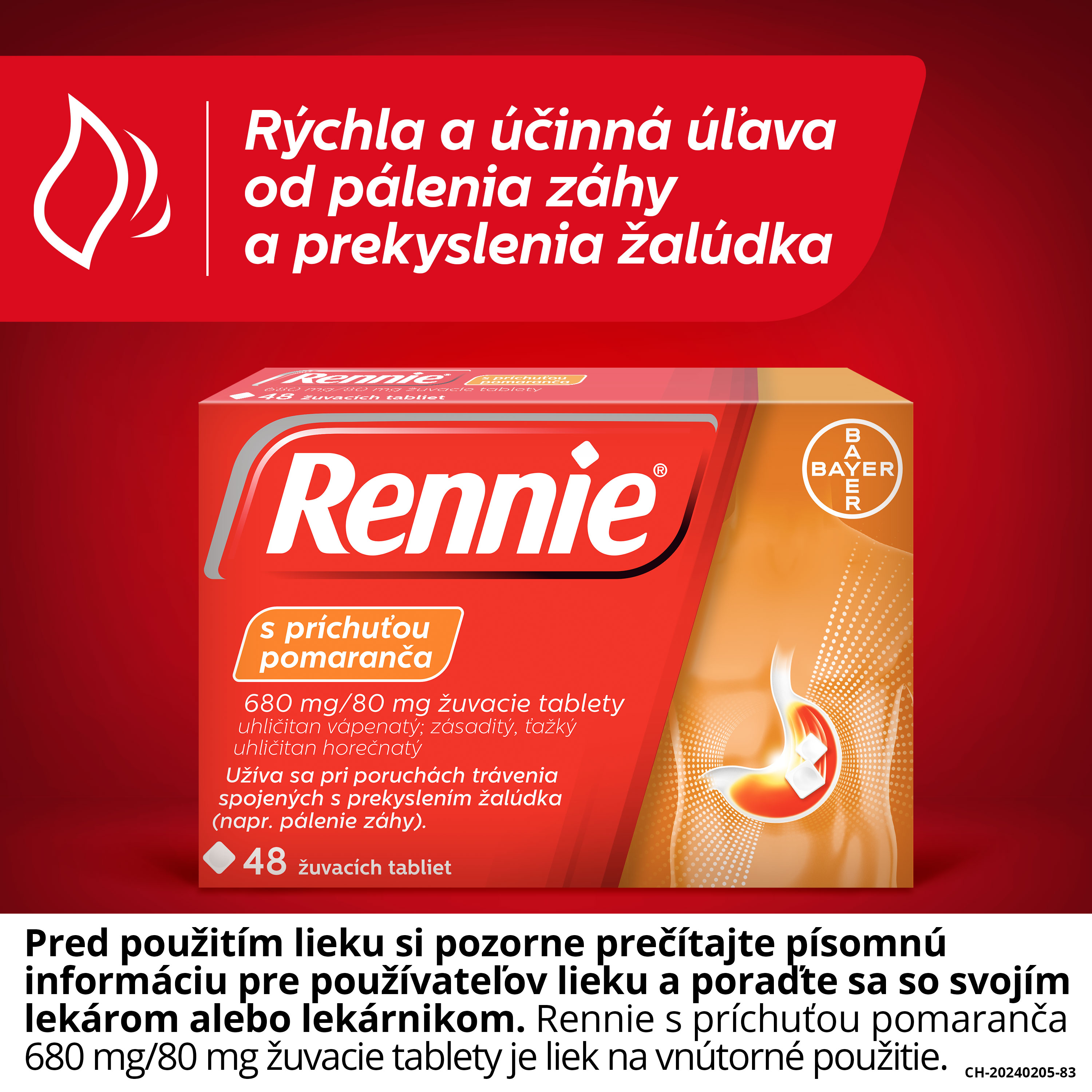 Rennie s príchuťou pomaranča, 48 žuvacích tabliet